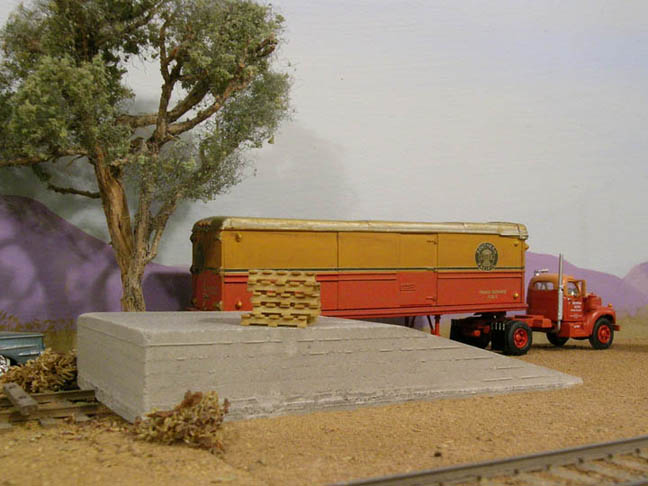 These two cast docks are setting to see how thy fit in with the scene. To finish the dock scene, brush fine dirt around the concrete base as seen in the first picture of this article. I have made five concrete docks so far using this styrene mold method without damage.