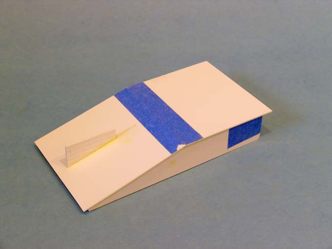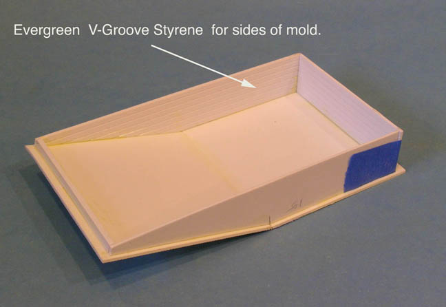 A left over piece of styrene from cutting the ramp sides was cemented to the bottom of the mold for support and to keep it level.
