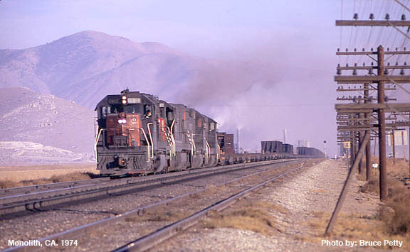 One of my favorite types of Southern Pacific freight trains was the Make-Up-Eugene (MUG) flat car train that ran from Los Angeles, Taylor yard north into Oregon, returning empty flat cars to lumber mills for reloading. I’ve seen this train with what seemed like a hundred flat cars snaking their way over the Tehachapi Mountains.
