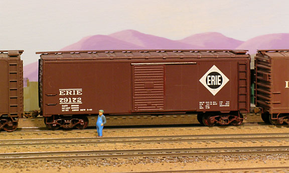 Erie 40′ Box Car. Athearn metal, made 1950s. Found at a train show in 2006. I’ve seen older box cars on the prototype looking new like this one, and I really don’t want to weather it.