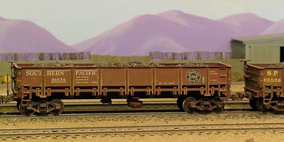 SP General Service Gondola. Made by Ulrich in 1950s. Weathered with a brown Latex paint wash. Loaded with sorted volcanic ant rock.