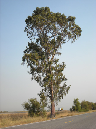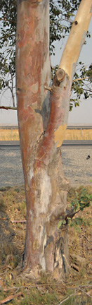 Eucalyptus trees grow all over California, along railroad right-of-ways and used as wind breaks on the edges of farmers fields. Below are examples of Eucalyptus trees I had recently photographed in the Sacramento Valley near Corning, CA. Notice the shape of the Eucalyptus trees and the colors of the tree’s bark.