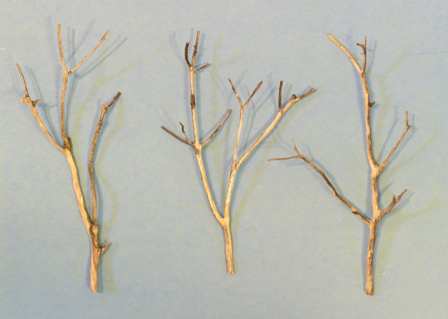 Here is what to look for while out Manzanita branch hunting. Eucalyptus trees can grow easily over 80 feet tall, however modeling them that tall can dwarf the layout scenery, so I pick dead Manzanita branches 5-7 inches tall and not being too wide.