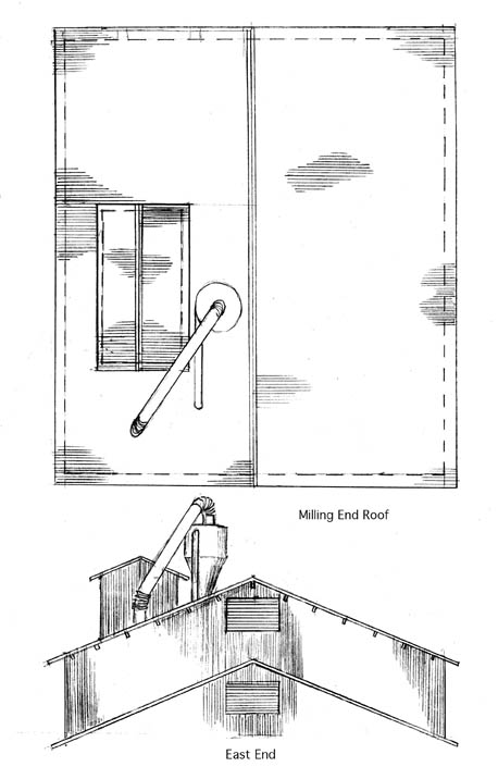 Box cars had a protective paper inside their sliding doors and were spotted next to the taller structure with the receiving chute. The chute can be seen in the picture at the bottom-center of the taller processing structure. This receiving chute would drop down at an angle to meet an open box car door, the inside paper would be cut so the commodity would free fall down the chute for a conveyer to lift and stored in separate bins. After the commodity finished free falling from the box car door, the rest had to be hand shoveled to the ends of the box car. This was hard labor, but at the time labor was cheep.