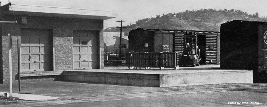 Here box cars were unloaded into trucks for local deliveries of less than car load shipments, or LCL freight. Seen in the picture sitting on the loading dock is a steam radiator that had been unloaded out of a box car with a fork lift.