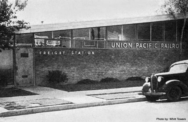 Union Pacific owned trackage rights all the way from Mission Tower to the top end of Taylor yard that served a 1.25 mile branch line that terminated at Forest Lawn Cemetery. The branch was a joint operation between UP and the SP, each railroad operating it every other year. Midway along the branch at Fletcher Drive road crossing was built this a modern looking post WWII Freight Station.