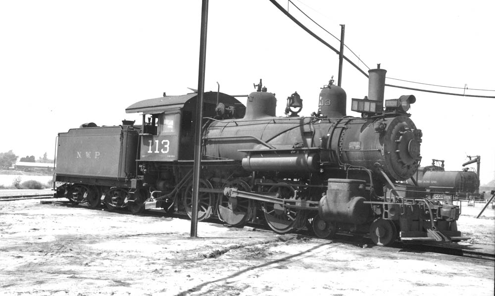 North Western Pacific engine #113 sits on a roundhouse track, it was out of service in 1947 and later scrapped.